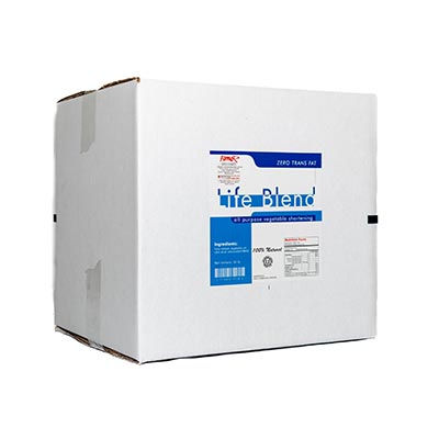 All Purpose Vegetal Shortening se empaca en cajas de cartón, con bolsas plásticas de Polietileno en 10 y 22.7 kilos